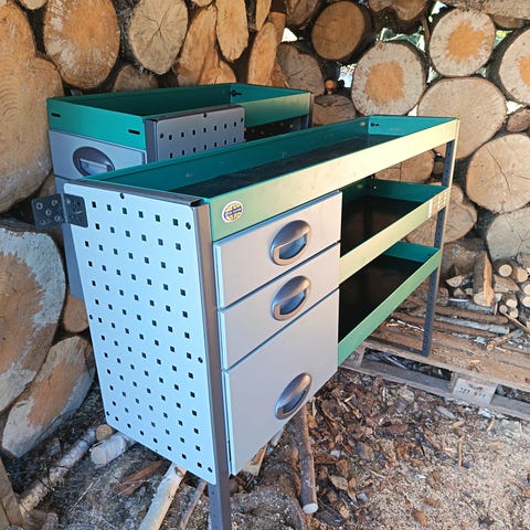 System Edström hyllystö ja työpöytä pakettiautoon metallinen vihreä/harmaa