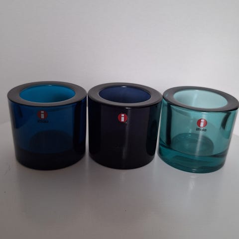Myynnissä 4 Iittalan Kivi-kynttilälyhtyä. Kaksi turkoosia 43,44 (15e/kpl)
