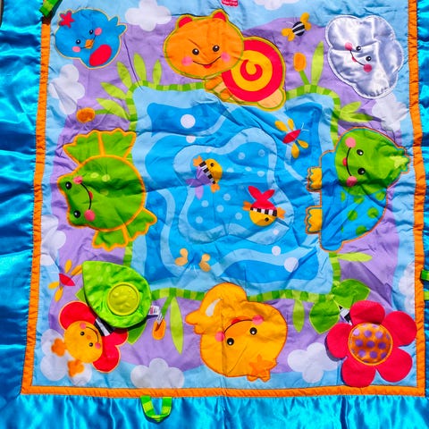 Tiny Love Black & White Gymini -leikkimatto vauvalle. Mustavalkoinen leikkimatto, jossa pehmeä alusta ja kaaret roikkuvine leluineen. Mukana useita irrotettavia leluja, kuten pehmohahmoja, peili ja helistimiä. Matossa on kontrastivärejä ja erilaisia kuvioita vauvan näön ja motoriikan harjoitteluun. Kaikki osat tallella.