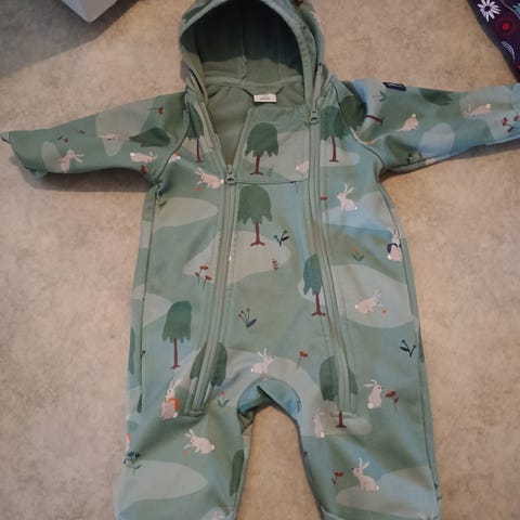 Name itin erittäin hyvä kuntoinen softshell haalari. Koko 62/68. Ollut vain rattaissa käytössä. Ulkopuolella ei kuluman jälkiä. Neppareilla irrotettava huppu.
