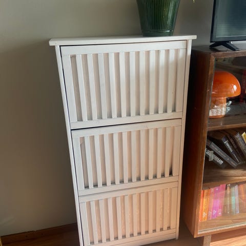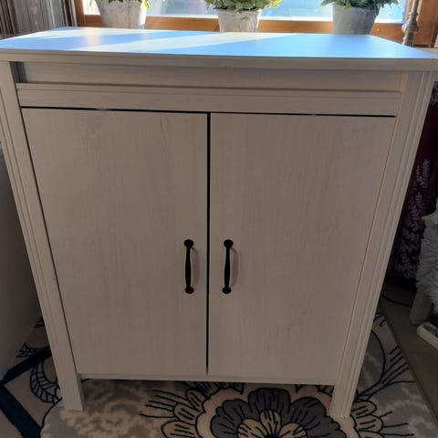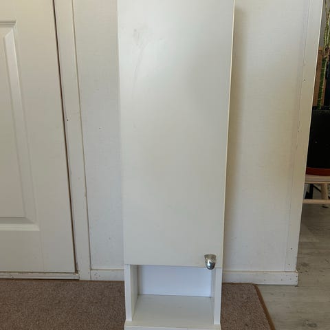 Myydään siro valkoinen yksihyllyinen kaappi. Kuuluu Jyskin SKALS-sarjaan. Ollut käytössä alle vuoden. Mitat L71 x K81 x S35 cm.