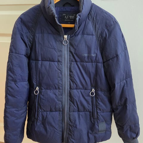 Armani Exchange miesten talvitakki, koko M, todellisuudessa lähempänä L kokoa. Väri tummansininen. Takissa on toppaus, kiinteä huppu ja täyspitkä vetoketju, jonka päällä on neppilista. Edessä taskut, hihansuissa resorit. Sopii kylmään säähän ulkokäyttöön.