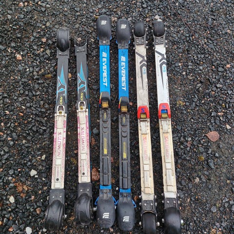 Skike VO2 rullasukset. Mallissa on ilmakumirenkaat ja säädettävät jalkatuet, jotka kiinnitetään omien jalkineiden päälle. Väri sininen/harmaa. Soveltuu rullahiihtoon ja kuntoharjoitteluun kovilla alustoilla. 30€/tarjous
