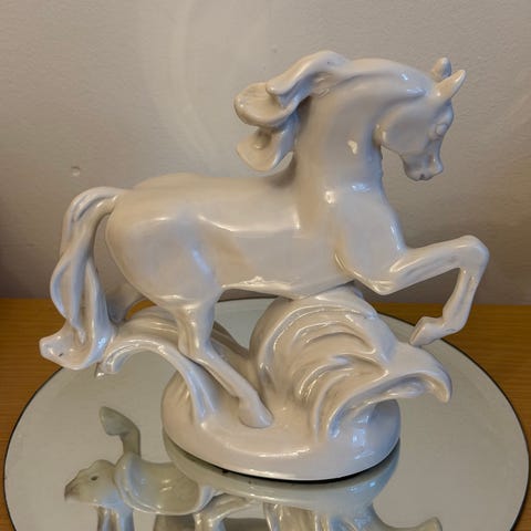 Kaunis Lomonosovin valkoinen hevonen kullatuilla yksityiskohdilla.