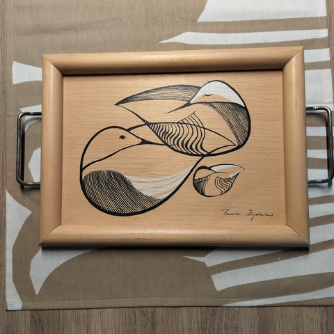 Kotimainen, suomalainen, värillinen, puinen, tarjoiluastia, retro, tarjoiluvati