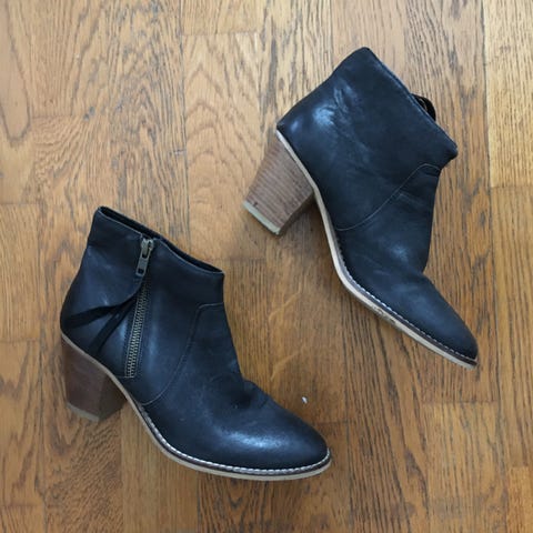 Acne Studios saappaat, koko 38. Mustat nilkkapituiset nahkasaappaat, joissa on paksu korko ja sivuvetoketju. Pyöreähkö kärki ja yksinkertainen, sileä pinta. Sopivat arki- ja kaupunkikäyttöön. Käytetty kunto, siksi alhainen hinta. En löytänyt enää laatikkoa mukaan. Nouto tai Toridiili.
