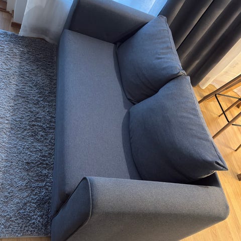 Mukava matala 2-istuttava sohva, joka muuntuu helposti sängyksi.