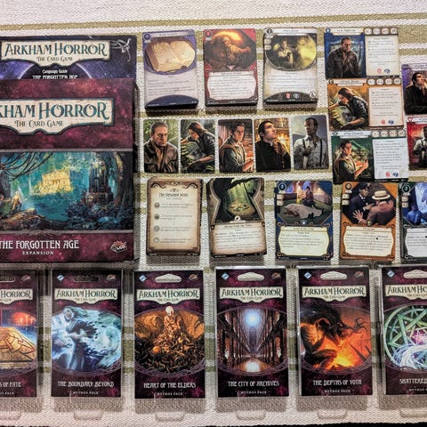 Vanhan mallin Arkham Horror Core setti. Mukana kahden coren verran pelaajakortteja (paitsi basic weakness kortteja joita yhden coren verran).
