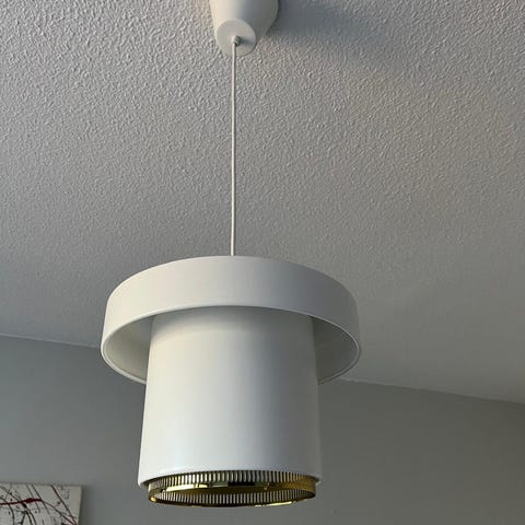 Myynnissä Alvar Aallon suunnittelema Artek A110 riippuvalaisin. Kokonaan valkoinen malli. Erinomainen kunto, johto alkuperäisessä pituudessaan, mukaan aitoustodistus. Valmistettu 5.11.2013.