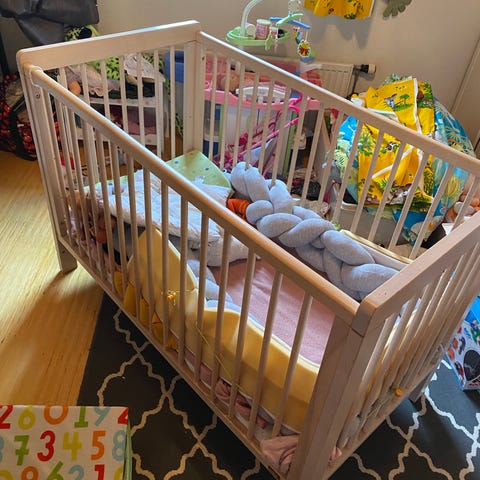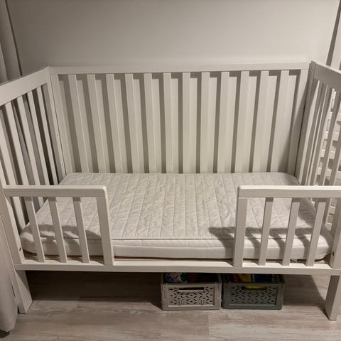 Puinen pinnasänky, jossa on sälepohja. Sängyssä on kauttaaltaan pinnat sivuilla ja päädyissä. Sopii vauvalle tai taaperolle nukkumis- ja lepohetkiin. Materiaalina lakattu puu tai puunvärinen pinta. Patja mukaan.
