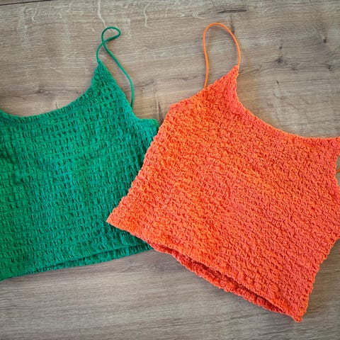 Mango olkaimeton toppi x 2 , koko M. Toppi on valmistettu polyesteristä ja siinä on kirjava kuosi. Malli sopii naisille ja siinä on pitsiyksityiskohtia yläosassa. Materiaali on kevyttä ja ohutta, joten toppi soveltuu käytettäväksi sellaisenaan tai esimerkiksi jakun tai neuletakin alla. Toinen toppi täysin pitsinen. Topit ovat käyttämättömiä.