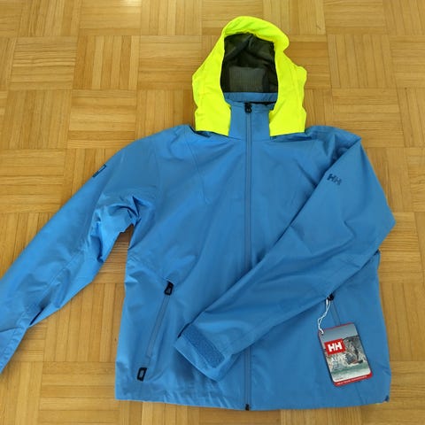 Kerran käytetty Helly Hansenin naisten kuoritakki koko L. Mitat kai-kai 55cm, olka-hiha 65cm ja olka-helma 67cm. Väriltään lohenpunainen. Veden- ja tuulenpitävä. Helmassa nauhat ja hihansuissa tarrat. Huppu, jonka saa taitettua kauluksen sisään. Täysin puhdas ja ehjä, kunnoltaan kuin uusi.