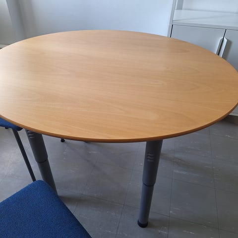 Pieni toimistopöytä 60x80cm, korkeus 74cm. Korkeus varmaankin säädettävissä. Yksi jalka vähän hassussa paikkaa, mutta pitäisi saada siirrettyä kulmaan. Pöytälevyssä pieni, melko huomaamaton särö. Hakuaikoja voi ehdottaa arkipäiville virka-aikaan n. 9-16.