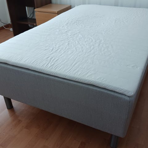 IKEA sänky runkopatjalla ja petauspatjalla harmaa