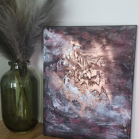 Kehystetty abstrakti taidegrafiikka, jossa ruskean ja beigen sävyisiä geometrisia ja orgaanisia muotoja. Teos on signeerattu ja numeroitu alareunasta. Teoksessa passepartout-pahvi ja metallinhohtoinen kehys. Mitat korkeus 70cm leveys 53 cm (kehyksien kanssa). Ostettu käytettynä eli tarkempia tietoja alkuperästä en osaa antaa.
