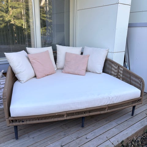 Säädettävä selkänoja ja jalko-osa takaavat hyvän käyttömukavuuden. Mukana pehmuste ja tyyny, joten voit käyttää heti ilman lisävarusteita.