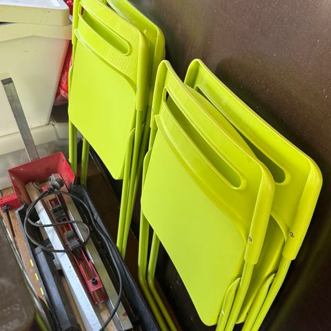 Jyskistä ostetut, meillä olleet pihalla ruokapöydän tuoleina. Hyvät ja tukevat istua, talvet olleet autotallissa säilössä. Hyvä käytetty kunto, mutta usean kesän jo palvelleet, joten pieniä naarmuja tms. löytyy jotka huomioitu hinnassa. Hinta yhteensä.