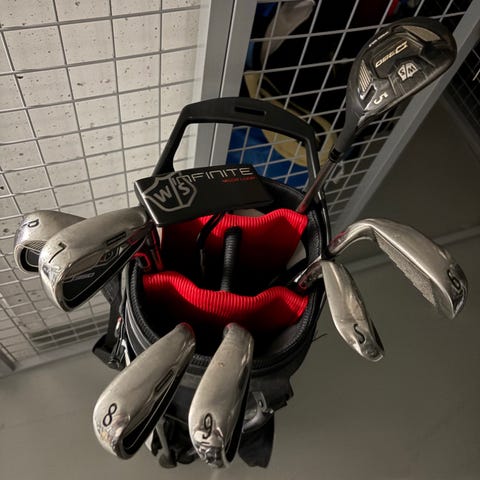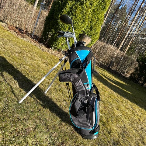Wilson Profile golfmailasetti (RH) ja bägi. Settiin kuuluu driver, hybrid, 3 rautamailaa ja putteri, kaikissa hyvät gripit. Mailat on mitoitettu junioreille (n. 140-160cm). Mukana kevyt jalallinen bägi, jossa on useita taskuja ja kantohihnat. Bägin pääväri on sininen mustilla ja valkoisilla yksityiskohdilla.
