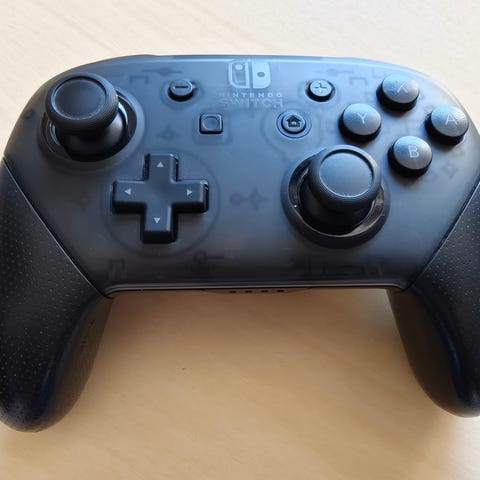 Hyväkuntoinen Nintendo Switch Pro Controller. Langaton peliohjain Nintendo Switch -pelikonsolille. Mukana USB-latauskaapeli.