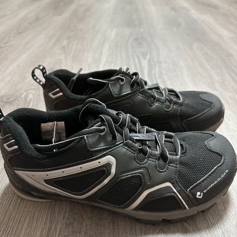 Shimano pyöräilykengät, koko 40. Kengissä on nauhakiinnitys ja jäykkä pohja, jossa kiinnityspaikat poljinklosseille (SPD-tyyppinen kiinnitys). Soveltuvat pyöräilyyn, jossa käytetään lukkopolkimia.