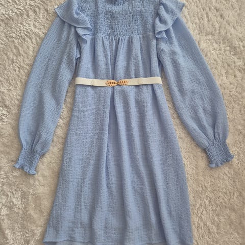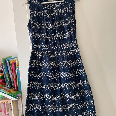 Sininen kuviollinen mekko, alla alusmekko. Pituus 90cm, kai-kai 45cm. S-M-koko. Ei vikoja.