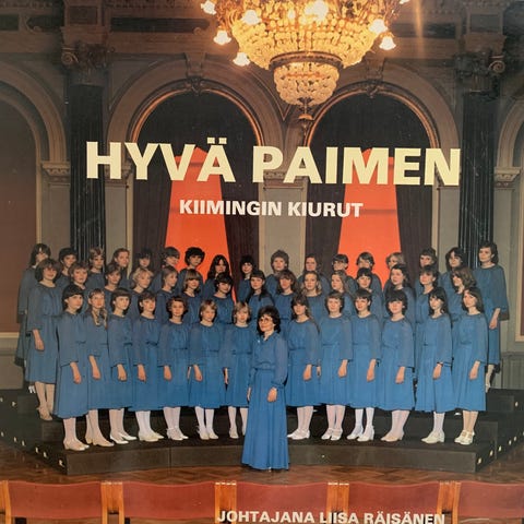 Kiimingin kiurut, kuoronjohtaja Liisa Räisänen, Gloria in excelsis Deo vinyylilevy, jolla esitetään kuoromusiikkia.