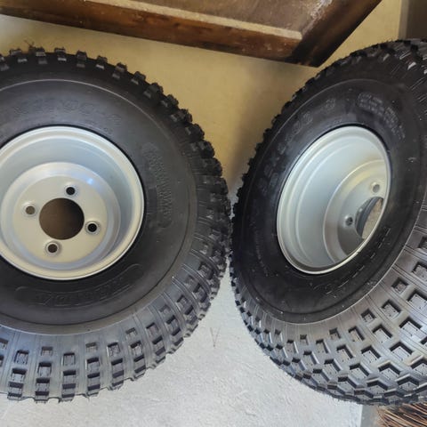 Myydään käyttämättömät mönkijän kärryn renkaat