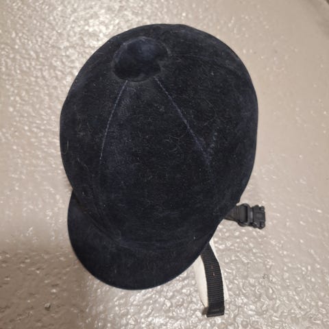 Harmaa ratsastuskypärä, jossa vaalea yläosan suojus ja ilmanvaihtoaukot. Kypärässä on lippa edessä sekä leukahihna säätömahdollisuudella. Sisäosassa on pehmusteet ja verkkokangas ilmanvaihdon parantamiseksi. Soveltuu ratsastuskäyttöön.