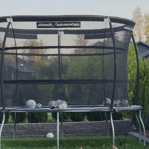 Trampoliini turvaverkolla ja tikkailla