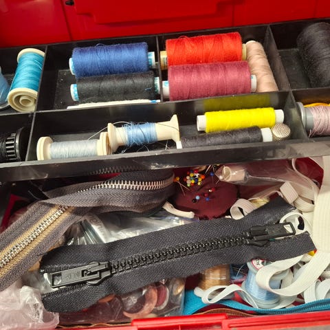 Premium Sewing Boutique ompelutarvikesetti monivärinen. Setissä on useita erivärisiä lankoja, kuminauhaa ja muita ompelutarvikkeita kotitalous- ja harrasteompeluun. Soveltuu esimerkiksi vaatteiden korjaukseen, pienten ompelutöiden tekemiseen ja askarteluun.