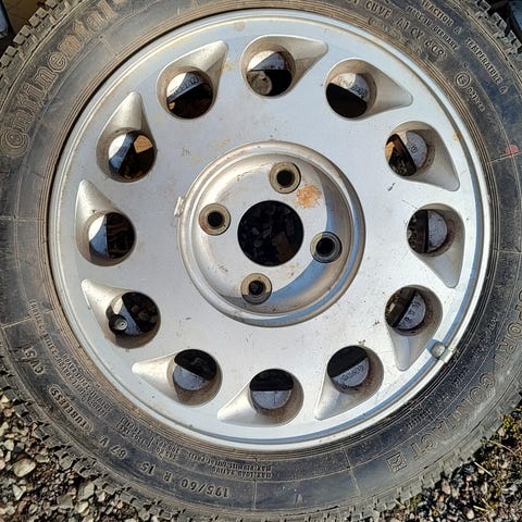 Ylimääräinen vararengas. Pultti jaosta en ole varma. En muista edes mistä autosta jäänyt.