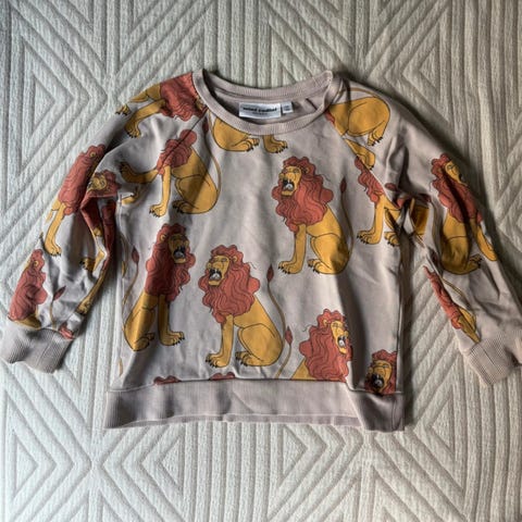 Yhdellä lapsella todella vähällä käytöllä ollut Mini Rodinin collegepaita kokoa 92/98 cm, unisex malli.