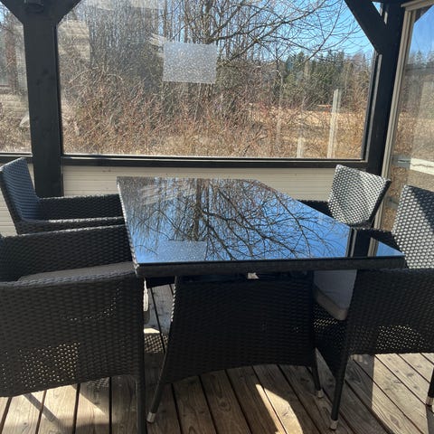 Polyrottinkinen terassisohvaryhmä pöydällä, tummanharmaa