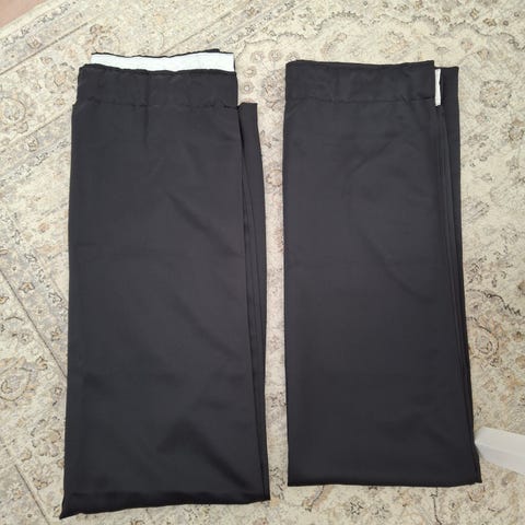 Myydään Jyskin Aldra-pimennysverhot. Verhot on ostettu uusina ja olleet pari vuotta säilytyksessä. Ulkopuolelta verhot ovat erittäin siistissä kunnossa, mutta säilytyksen aikana verhojen nurjalle puolelle on ilmaantunut värieroja ja viikkauskohtiin on kulunut muutama pieni reikä, jotka on luultavasti helposti paikattavissa (kts. kuvat).