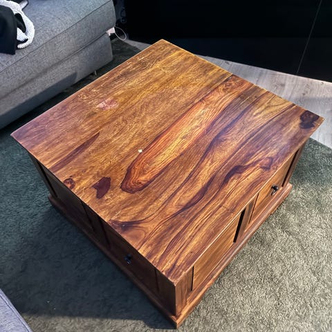 Myydään hyvässä käytetyssä kunnossa oleva Acazia arkkupöytä. Päällisen öljyämisellä värierot saa tasaiseksi. Ei kuitenkaan haittaa käyttöä.