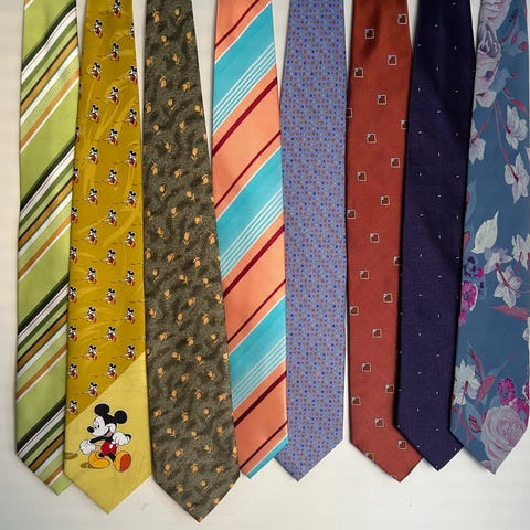 Kolme erilaista solmiota: tummansininen solmio vaalealla koristekuviolla, tummansinivalkoinen solmio graafisella kuviolla sekä punainen solmio sävy sävyyn -kuviolla. Sopivat käytettäväksi juhla- ja edustustilaisuuksissa tai arkipukeutumisen viimeistelyyn.