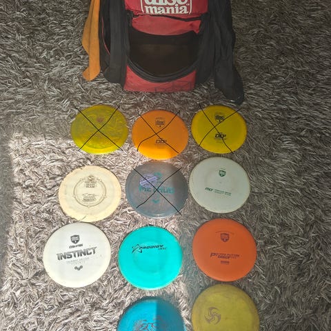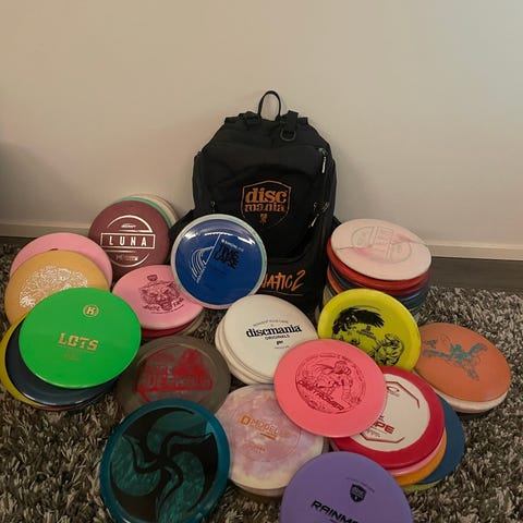 Discmania reppu ja 13 kiekkoa