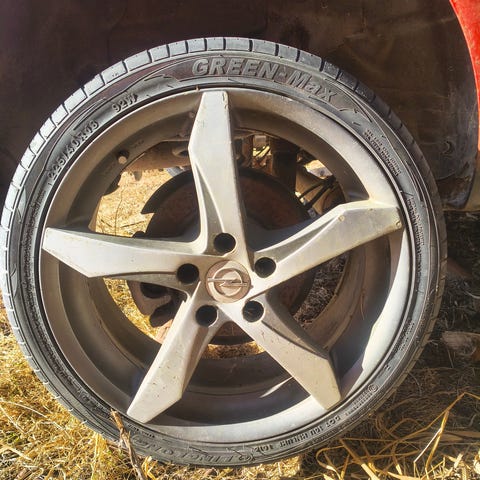 Hyvä kuntoiset vanteet, kuvassa likaiset ja kumit huonot.