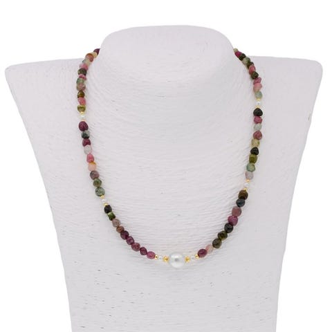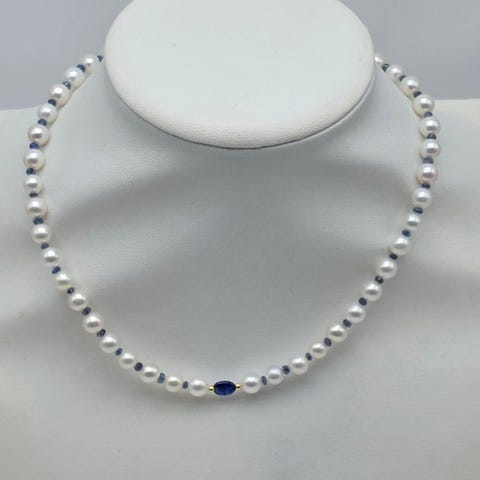Kaulakoru - 18 kt. Keltakulta Helmi - Safiiri - Smaragdit/rubiinit