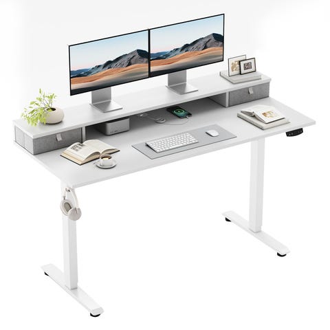 Sähköinen nostojärjestelmä: pöydässä on edistynyt moottori, joka tukee korkeussäätöä 72 cm:n ja 116 cm:n välillä ja jonka melutaso on alhainen (alle 55 dB) käytön aikana.. Voit säätää haluttua korkeutta erikseen ja tallentaa muistiin kahden muistipainikkeen avulla.. 2 laatikkoa: Pöydän yläpuolella olevat kaksi kangaslaatikkoa auttavat järjestämään tavarasi ja pitämään työpöydän aina puhtaana ja siistinä.. Pöytälevy on valmistettu materiaaleista, joitka täyttää kansalliset ilmanlaatua koskevat standardit.. Tukeva runko ja kestävä moottori: Teollisuusluokan teräsrunko ja T-muotoinen runkorakenne varmistavat, että tämä seisomapöytä tukee enintään 70 kg:n painoa.. Yhdessä moottorin kanssa, joka on läpäissyt 50 000 kansainvälistä nostotestiä, varmistetaan, että pöytä toimii luotettavasti pitkän aikaa.. Törmäyksenestotekniikka: Jos nostopöytä kohtaa esteen nostettaessa, se liikkuu 2 cm vastakkaiseen suuntaan mahdollisten vaurioiden tai loukkaantumisten välttämiseksi.. Pöytälevyn puu on FSC-sertifioitu.. Helppo koota: sähkökäyttöisen seisomapöytämme asennusprosessi on erittäin yksinkertainen ja kestää vain muutaman vaiheen. Pakkaus sisältää asennusohjeet ja kokoamistyökalut
