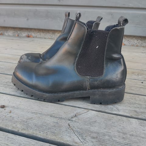 Musta nahkaiset Horze ratsastusnilkkurit. Paksu, kuvioitu kumipohja ja kanta. Sisämitta n. 22,5cm.