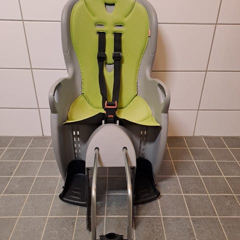 Hamax Siesta. Runkokiinnitys, helppo käyttää. Maks. 22 kg lapselle ja yli 9 kk ikäiselle. Mukana lisäkiinnike eli helppo siirtää pyörästä toiseen. Käytön jälkiä, mutta yleiskunto hyvä. Vain nouto.