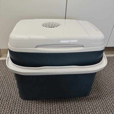 Kannettava kylmälaukku (sun & Fun Cooler E30)jossa on yläkautta avattava kansi. Ulkopinta on muovia ja sisäosa helposti puhdistettava. Tilavuus 30 litraa. Toimii verkkovirralla sekä autossa tupakansytyttimellä.