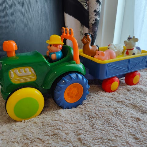 Traktori, jossa vaihdettava kauha ja traktori äänet. Hyvä kunto