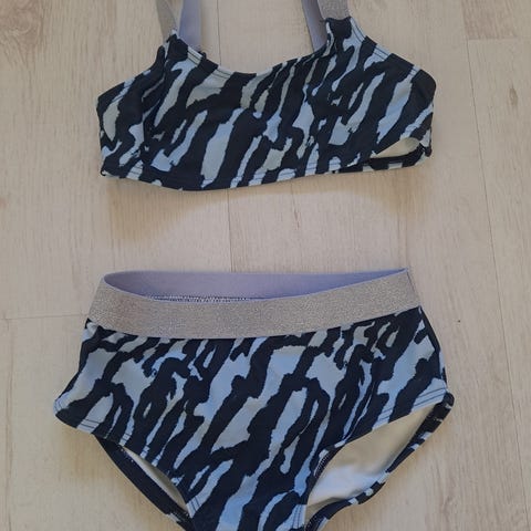 Myydään lasten pastellisävyiset, glitterikoristeiset bikinit. Koko 122/128.