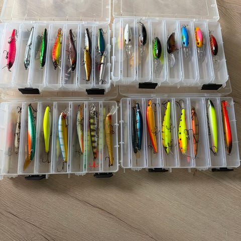 90 viehettä joista 71 kpl huippu vaappuja super halvalla! 200 euroa kaikki 90 viehettä. Hinta per viehe 2,22 euroa. Osa vieheistä täysin uusi ja käyttämättömiä. Huippuerä vaappu-uistimia erilaisissa malleissa ja väreissä. Mukana useita eri kokoisia vaappuja, joissa on useimmiten kaksi tai kolme kolmihaarakoukkua. Värit vaihtelevat kirkkaista fluorisävyistä luonnollisiin kalajäljitelmiin, osa raidallisilla tai pilkullisilla kuvioilla. Uistimet soveltuvat pääosin vetouisteluun, mutta myös heittokalastukseen. Vieheet sopii monille eri kalalajeille. Myydään kuvien mukaisena kokonaisuutena.