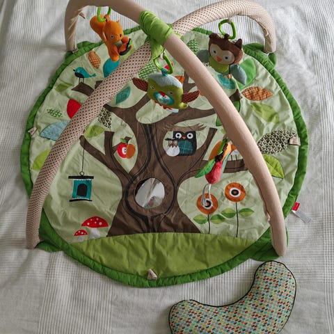 Yhdellä lapsella käytössä ollut siistikuntoinen leikkimatto jossa ääni ja valotehosteita. Toimii moitteetta ja kunto hyvä. Pieniä käytön jälkiä. Kankaat pesty koneessa ennen kuin laitettu lämpimään sisävarastoon. Kuvia saa koottuna halutessaan, alla linkki jossa vastaava tuote. Ostettu uutena aikanaan.