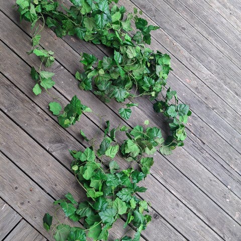 Tekokasvi suurilla vihreä–muoviruukussa. Lehdet ovat kaksiväriset: päältä vihreät vaaleanvihreällä kuviolla ja alta violetit. Varret ovat tummanruskeat ja istutettu keinotekoiseen kasvualustaan. Sopii sisätiloihin koristekasviksi, ei vaadi kastelua tai hoitoa.
