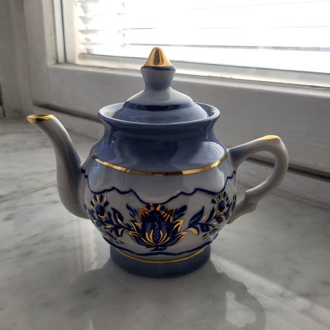 Miniature Posliininen teekalusto, jossa kannu, kuusi teekuppia ja lautanen. Astioissa on moniväriset, yksityiskohtaiset koristekuviot. Setti on pakattu punaiseen lahjarasiaan, jossa on muotoon leikattu pehmuste ja erillinen paikka lautaselle. Soveltuu teen tarjoiluun ja kattaukseen usealle hengelle.