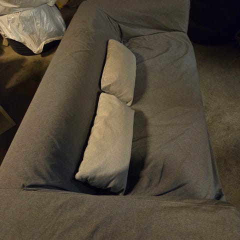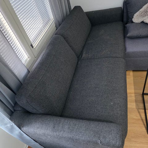Ylimääräisenä vaalean harmaa sohva. Käsinojissa pari tahraa, mutta lähtee varmaan tekstiilipesurilla. Istuin ja selkänoja päälliset juuri pesty pesukoneessa. Saa tulla istuskelemaan.